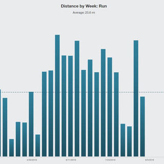 Run: 1,225 miles / 165 hours- AVG-23.6 miles/wk (-470 mi from 2017)